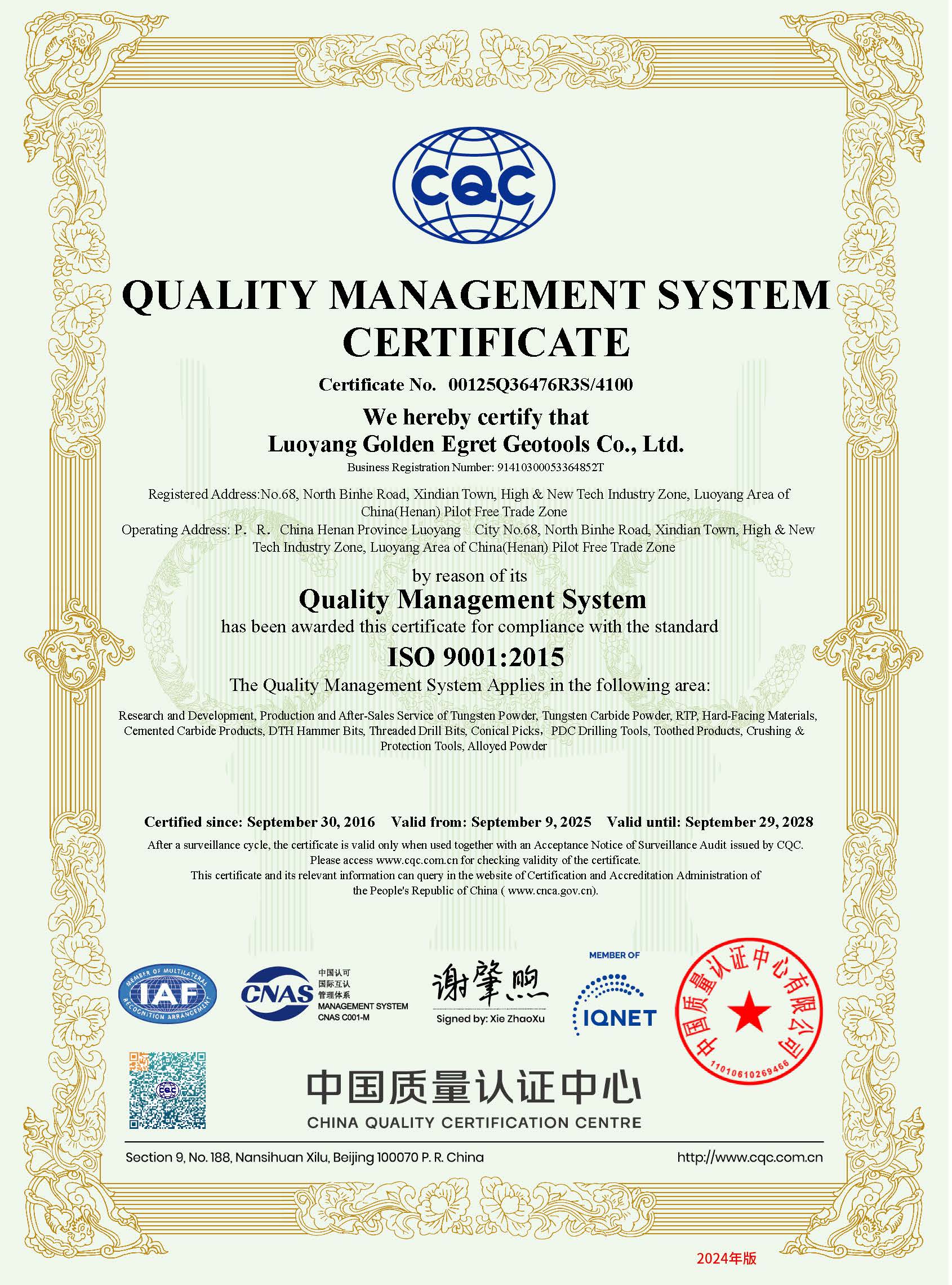 | Pangalan ng Certificate: | ISO 14001 Environmental Management System |